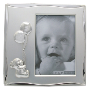 Cornice foto personalizzata – orsacchiotto ( foto 10 x 15 cm). Placca argent. Incisione nel prezzo!