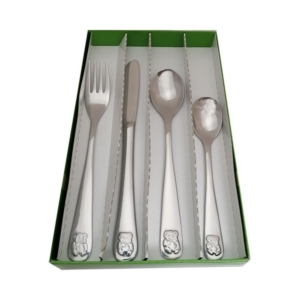 CHF 33.00Un set di posate personalizzabile per fargli gustare i suoi primi manicaretti! Completo di posate destinate ai bambini. Sono studiate per adattarsi alle manine dei bambini e sono lavabili in lavastoviglie.Il completo è imballato in una scatola decorativa. Dimensioni: 17 / 18 / 16,5 / 13,5 cm