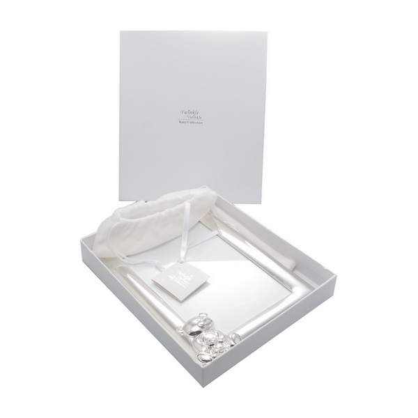 Elegante cornice foto in metallo placcato argento perfetta per ogni occasione e per ogni foto! Un’idea regalo originale per la nascita or splendido regalo per battesimo di un bambino.