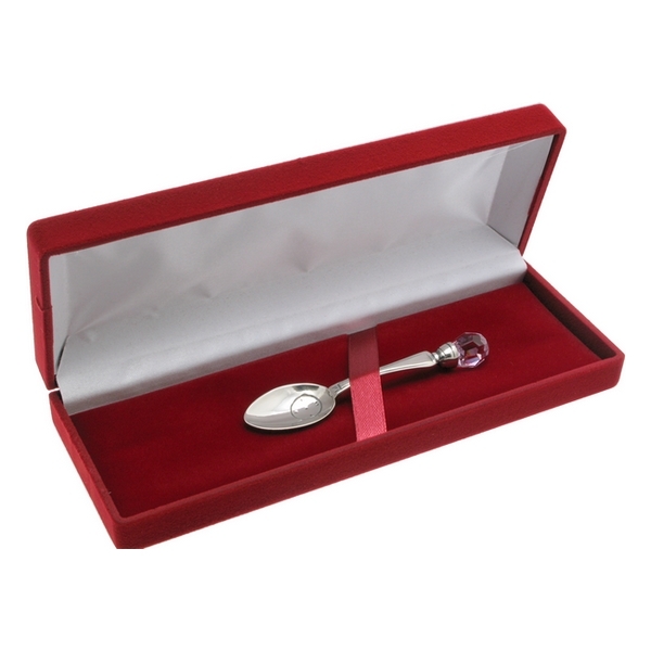 Cucchiaino in argento. Venduto con l’astuccio, questo articolo è il bestseller. Il cucchiaino L’ora più bella è l’articolo più adatto da regalare ai nuovi arrivati, sul suo manico si possono incidere: il nome del bimbo, il peso, l’altezza, la data e l’ora della nascita.