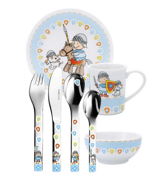 1x forchetta, 1x coltello, 1x cucchiaio, 1x cucchiaino, 1x piatto, 1x tazza, 1x ciotola