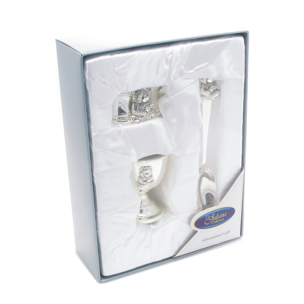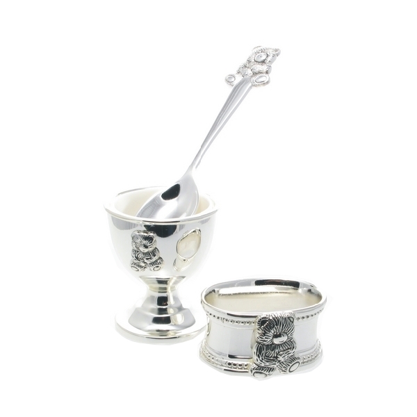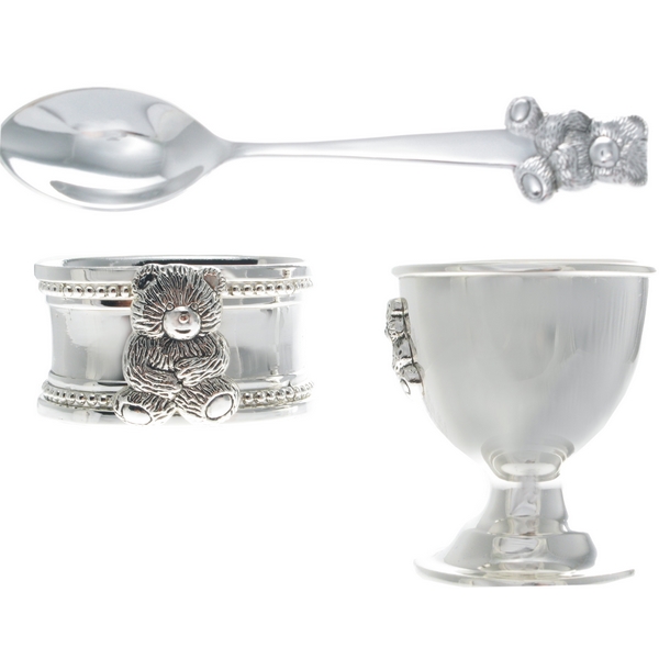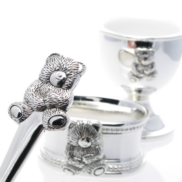 Set colazione – per bambini – Teddy Bear. Argentato. Incisione gratuita!